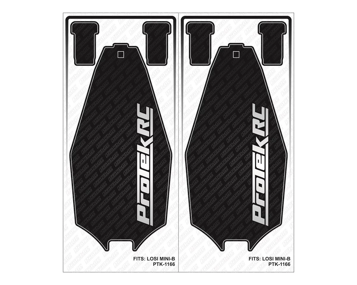 This is a two pack of ProTek R/C Precut Chassis Protective Sheets, designed specifically for the Losi Mini-B buggy. ProTek R/C Chassis Protective Sheet is made from high strength laminate and backed by an aggressive adhesive vinyl. Each sheet is cut to exact dimensions of the model, and provides a professional look while helping to protect your chassis.