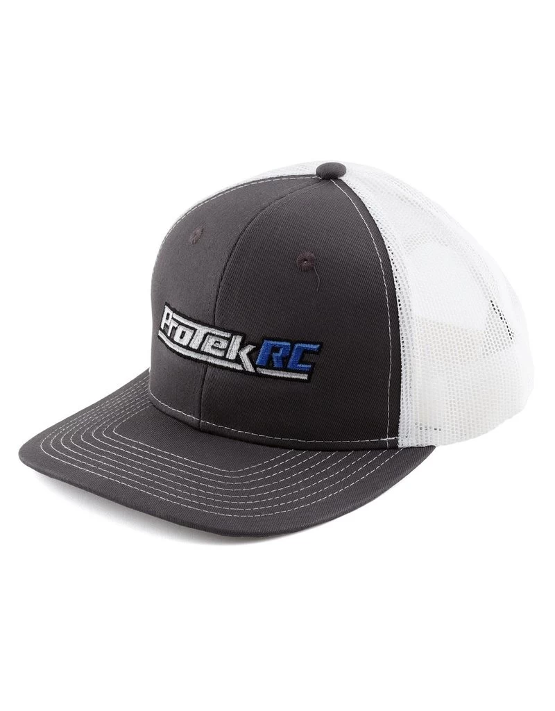 This is the ProTek R/C Grey Trucker Hat. This hat features the ProTek R/C logo embroidered into the front while the rear features a white plastic mesh material that will help keep your head cool in the heat of competition. There is also a plastic strap on the back of the hat providing ’one size fits most’ adjustability.