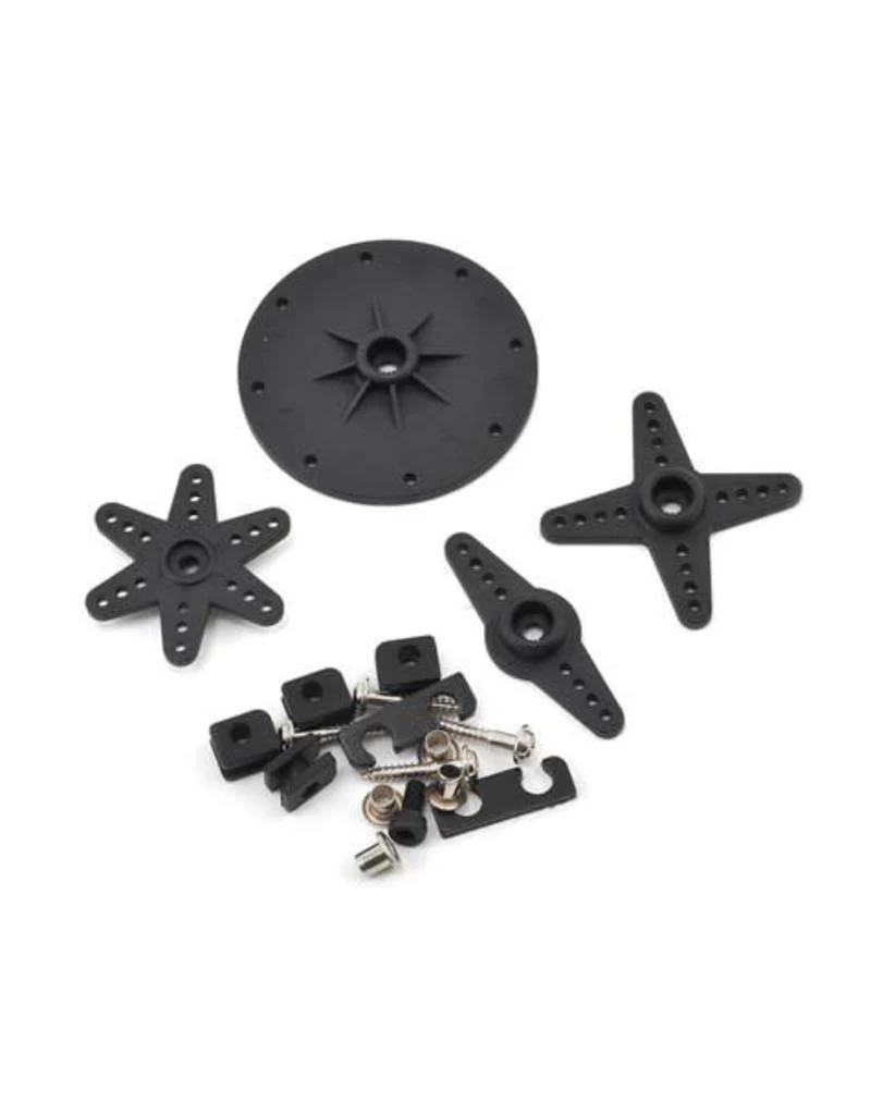 A black anodized aluminum case with aluminum and white accents give this servo a stealthy look that sets it apart from the rest. The aluminum upper case provides bomb proof durability and the heat sink center case offers efficient heat dissipation and helps to reduce weight. The lead wire is detachable, allowing you to easily custom tailor the servo lead to your application, and the package includes both 135mm and 285mm length servo leads. Plus, a full selection of servo arms and mounting hardware are included making installation easy.Â
