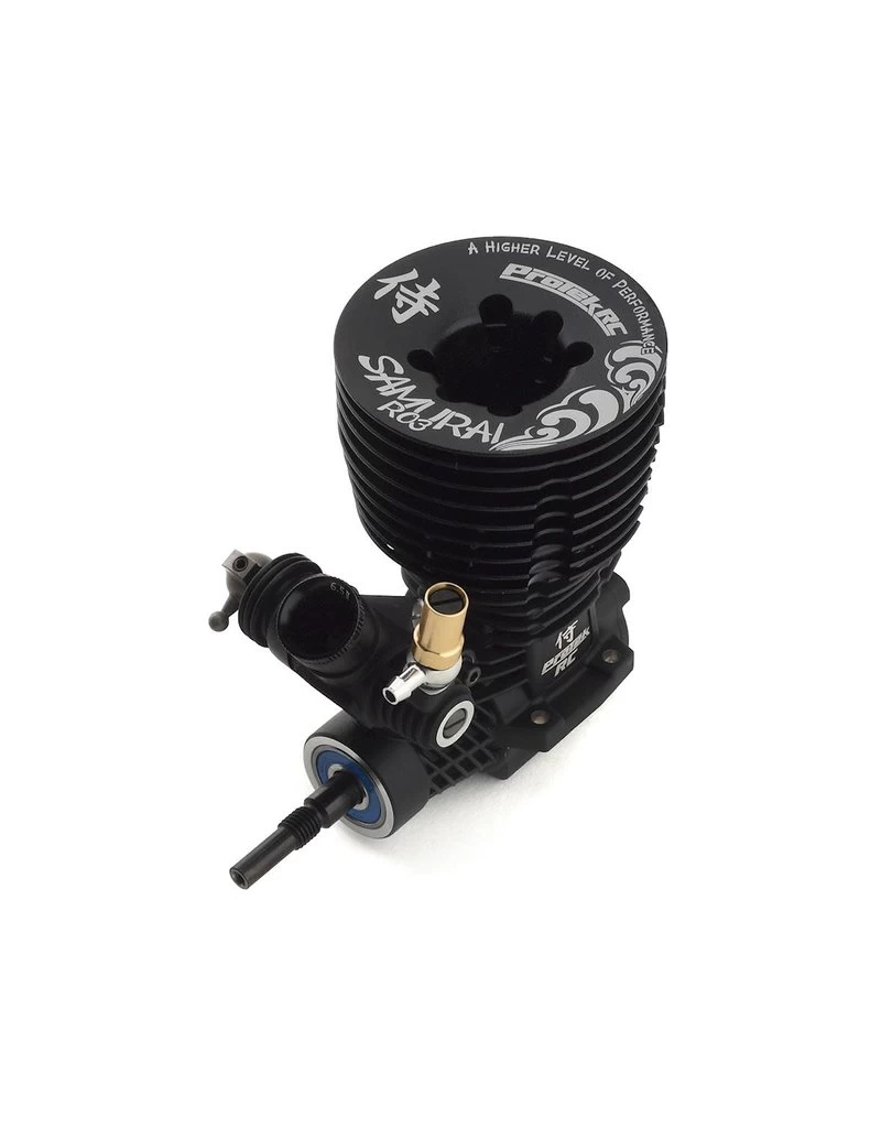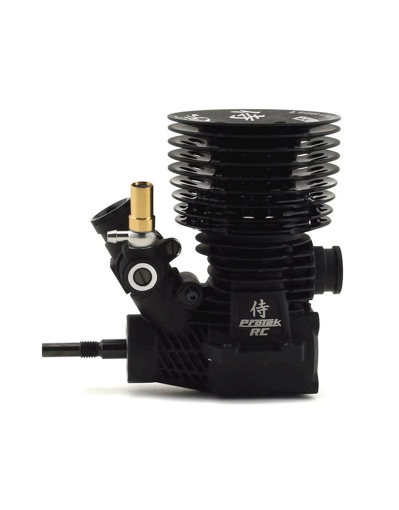 The ProTek R/C Samurai R03 3-Port .21 Competition Nitro Engine is the perfect weapon for 1/8 scale truggy and large track buggy applications, where an aggressive power band can provide an advantage. The Samurai R03 delivers a lethal blow with its high power 22E carburetor and long stroke configuration. Combine this with a 3-Port sleeve, turbo head button, 9 fin cooling head and rear ceramic bearing, and the R03 becomes a formidable opponent with its power, performance and proven reliability.