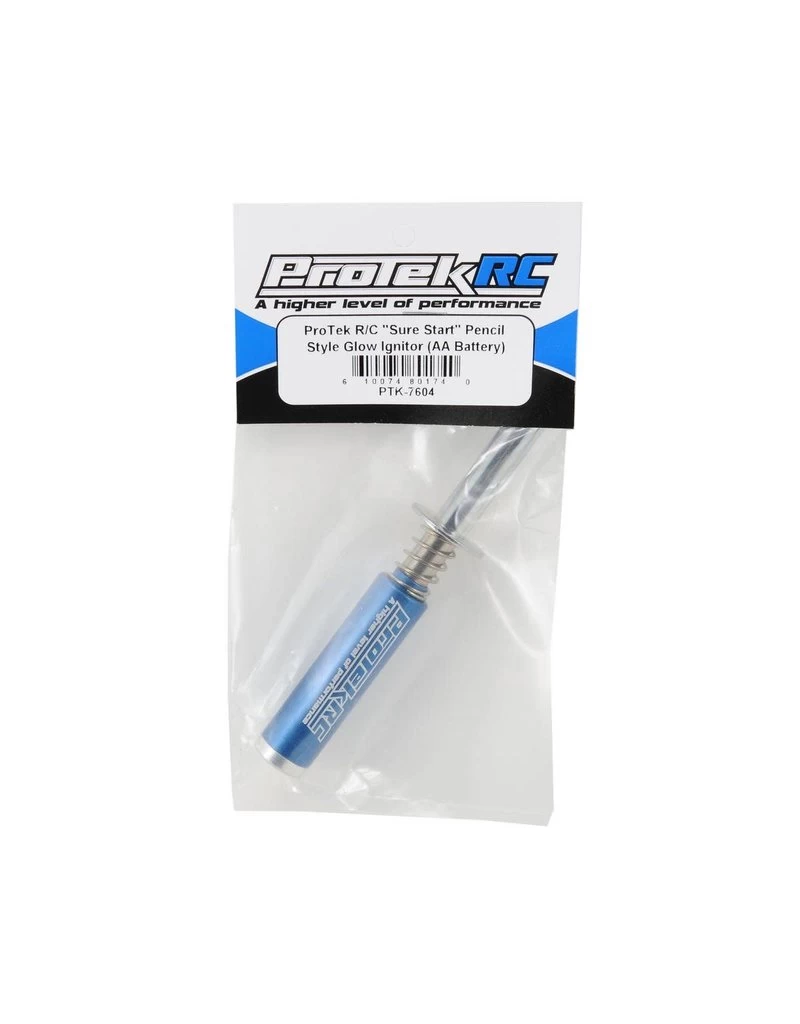 This is the ProTek R/C “SureStart” Pencil Style Glow Ignitor. The SureStart pencil ignitor is a high quality glow ignitor that uses a AA size alkaline or rechargeable battery. This ignitor is great for surface and aircraft applications, due to its compact size and 2.25″ reach. The blue anodized aluminum handle is easy to spot in your pit bag, and when properly maintained will withstand years of use.Â