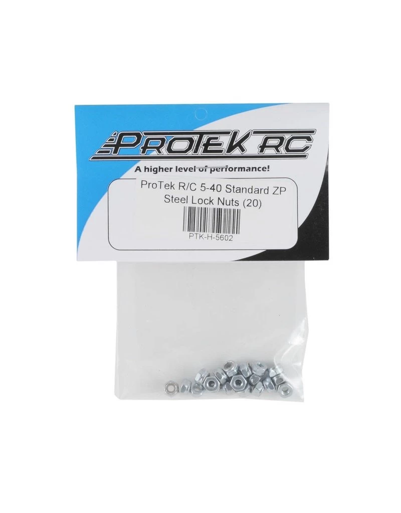 This is a pack of twenty 5-40 “High Strength” Standard ZP Steel Lock Nuts from ProTek R/C.
