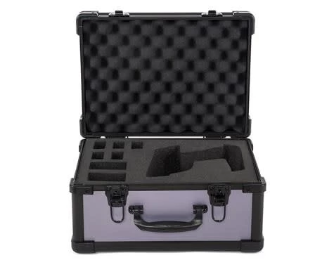The case itself features a tough aluminum shell, with reinforced corners, locking latches and a high density foam lined interior, all in an effort to withstand the potential punishment and abuse that occurs during transportation. But what makes this case unique is the replaceable high density foam inserts that allow the case to accommodate a variety of transmitters on the market! This includes Airtronics, Spektrum, KO Propo, Futaba and JR! Simply purchase the foam insert that fits your transmitter, and use the same case over and over.